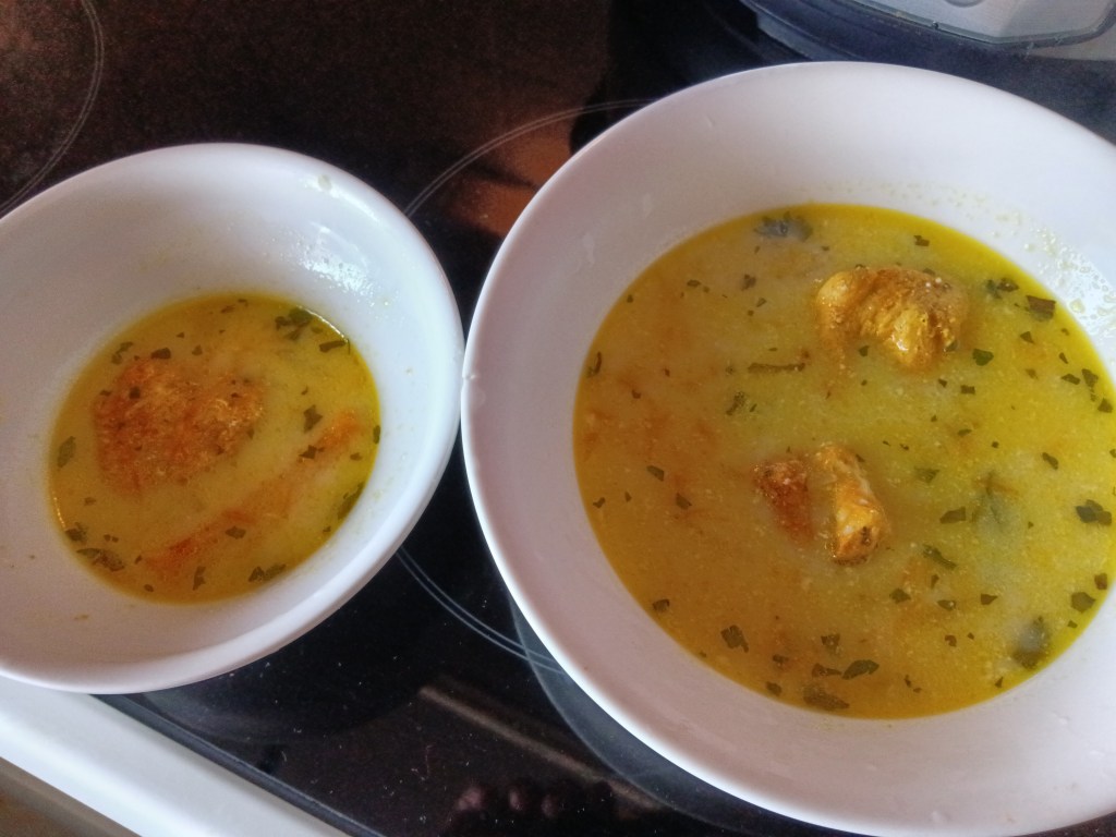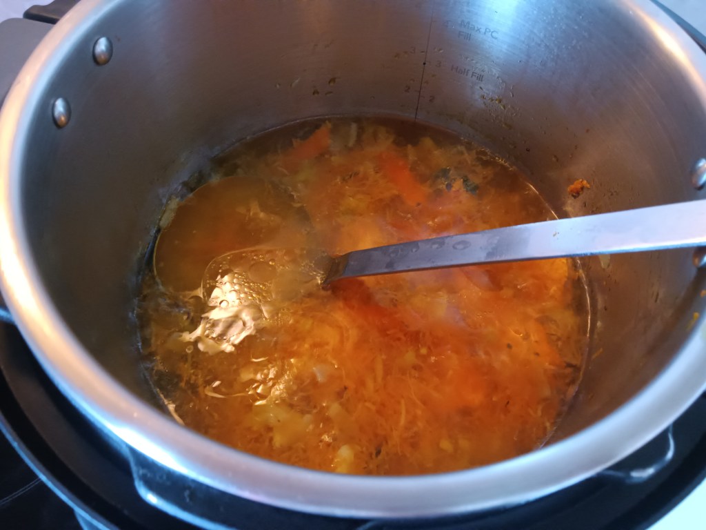 1. Am tăiat mărunt ceapa și frunzele de țelină. Apoi am dat pe răzătoarea mică morcovul și felia de țelină. O jumătate de morcov a fost tăiată în bastonașe (numai bine de ținut în mână de puiul care acum învață să mănânce). Eu am pus pieptul de pui (suc de lămâie+curcuma+usturoi+ulei de măsline+boia de ardei dulce) tăiat felii la marinat pentru câteva ore înainte de pregătirea ciorbei.