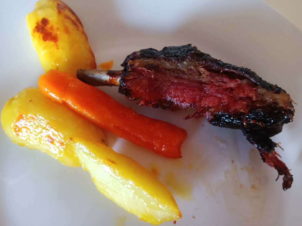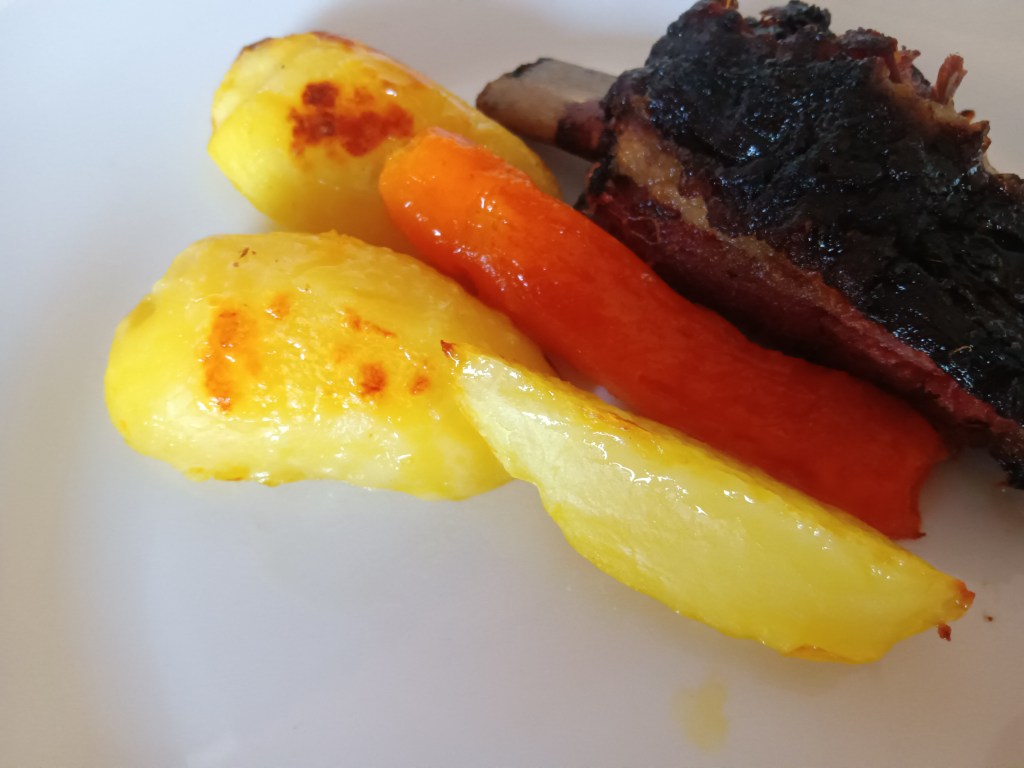 Noi am servit cu cartofi și morcovi la cuptor, alături de o salată.