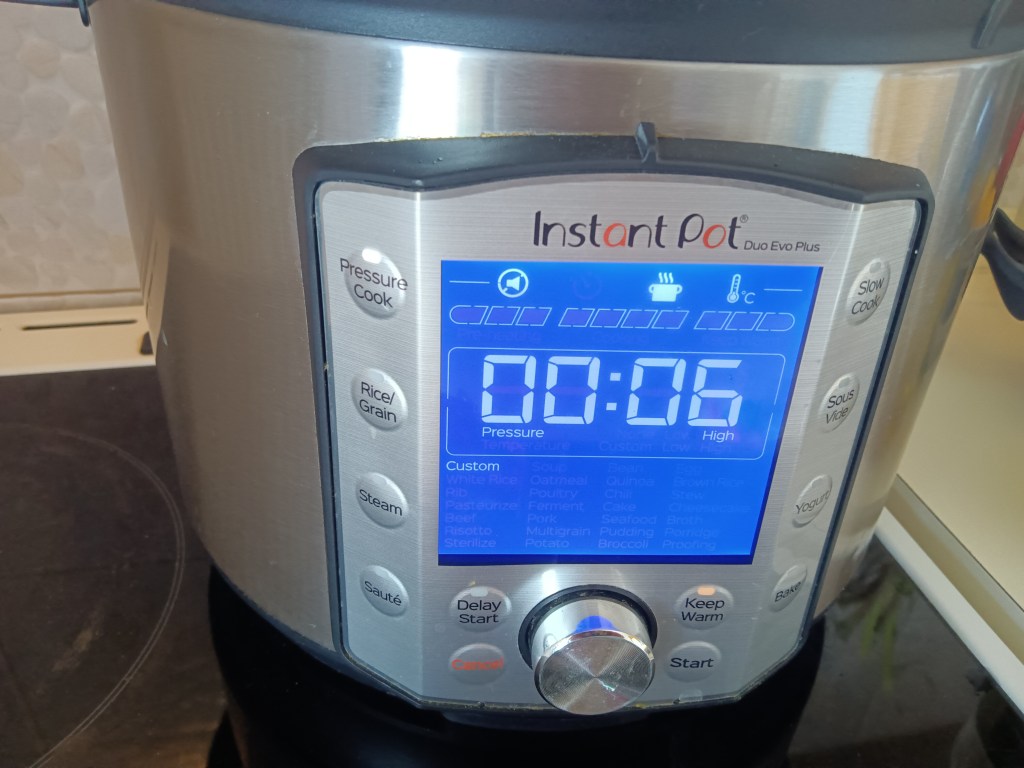 3. Am închis capacul, am selectat Pressure Cook, High, 6 minute.