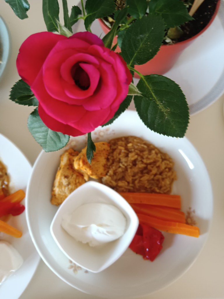 Astăzi am pregătit la #instantpot orez cu piept de pui și legume.