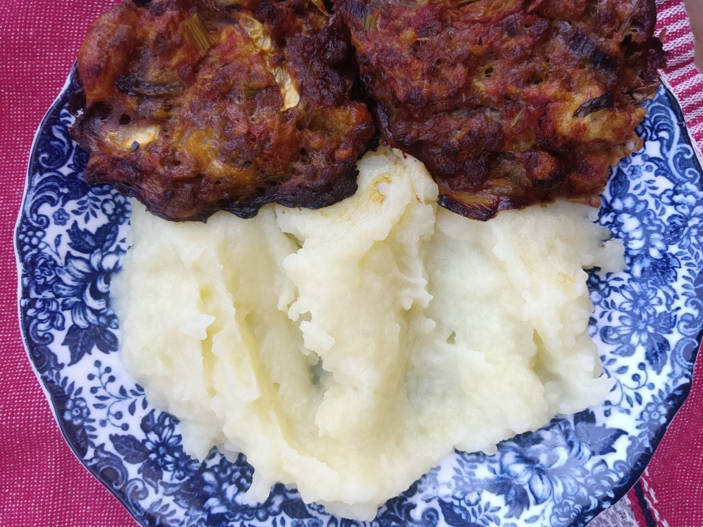 Noi am servit cu chifteluțe de vită și porc făcute la cuptor.