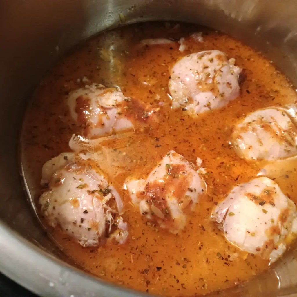 1. Având pulpele de pui congelate am preferat să le pun la fiert in Instant Pot înainte de a începe pregătirea acestui fel de mancare. Am folosit opțiunea Pressure Cook, High, 15 minute.