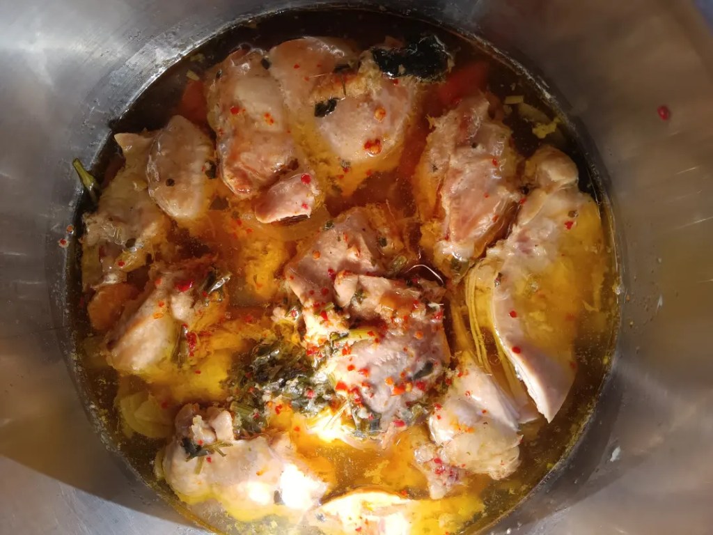 ✅ condimente: sare, piper, o linguriță de boia dulce, o linguriță de usturoi, două lingurițe de miere, o linguriță de ghimbir, jumătate de legătură de pătrunjel.