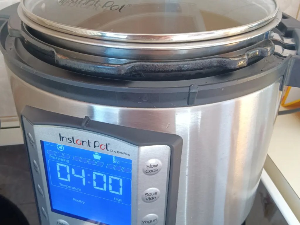 3. Am pus capacul și am selectat SLOW COOK, Poultry, 4 ore.