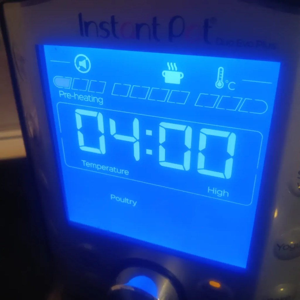 3. Am pus capacul și am selectat SLOW COOK, Poultry, 4 ore.
