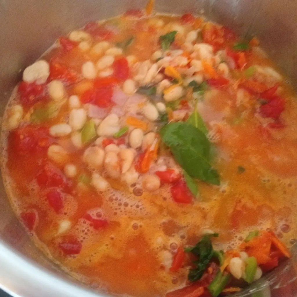 Astăzi am pregătit un borș de fasole. Am adăugat în vas 250 g de fasole albă uscată, patru căni de apă, am selectat Pressure Cook, High, 20 de minute. Am lăsat să scadă singură presiunea 10 minute.