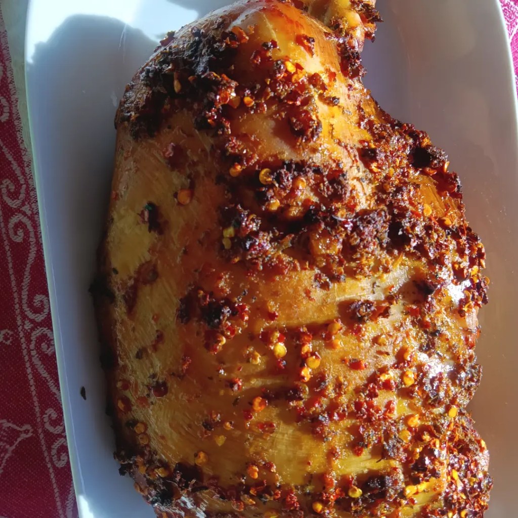 Las aici încă o rețetă pregătită folosind opțiunea Slow Cook a Instant Pot-ului. Este piept de curcan glazurat cu miere și fulgi de ardei dulce.