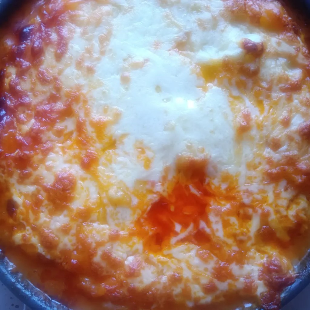 3. După vreo 15 minute, am adăugat cașcaval ras și am pus iar la cuptor până s-a topit și s-a colorat frumos.