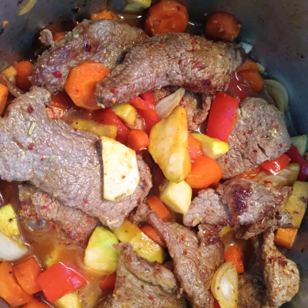 Pentru prânzul de azi am pregătit tocană de vită cu păstăi. Am folosit funcția Slow Cook.