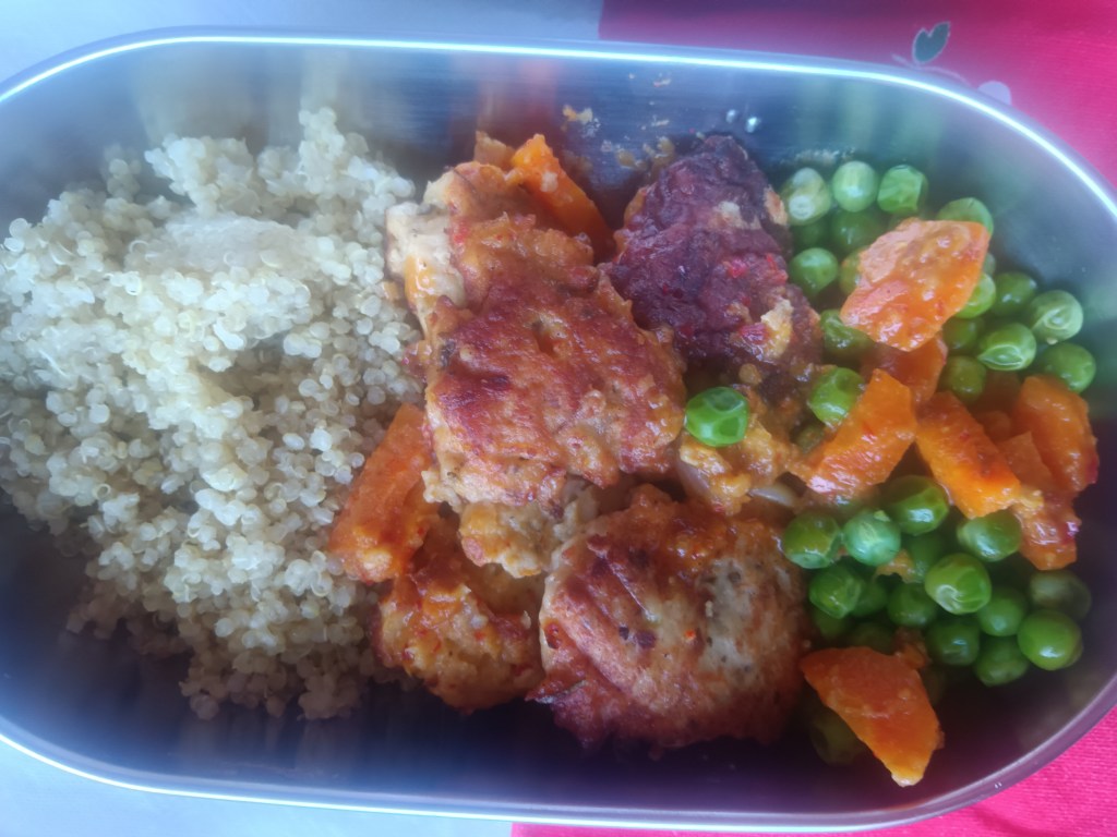 Pentru prânzul de ieri am pregătit rețeta asta care a ieșit grozav de delicioasă. Am folosit Instant Pot atât pentru a pregăti quinoa (Pressure Cook, High, 5 min), cât și pentru a pregăți chifteluțele și legumele.