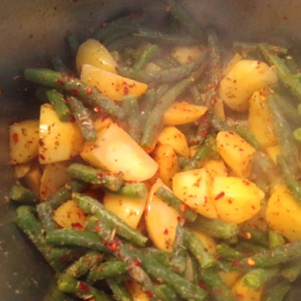 3. Am adăugat păstăile, am amestecat bine. După un minut, am oprit funcția SAUTÉ.