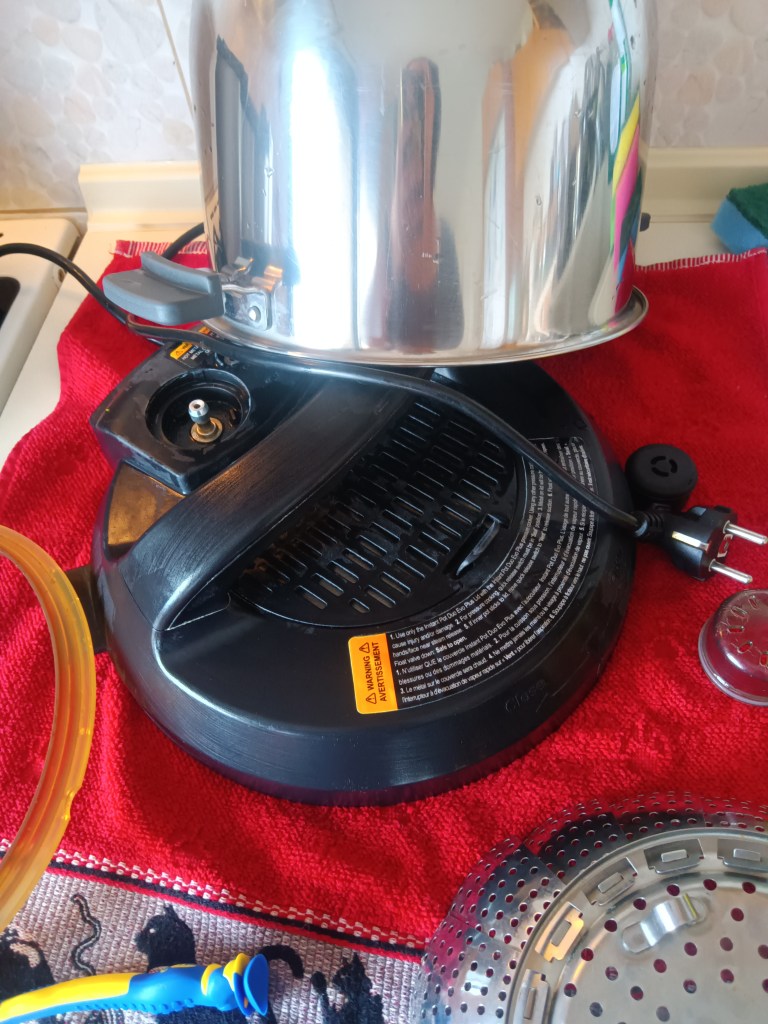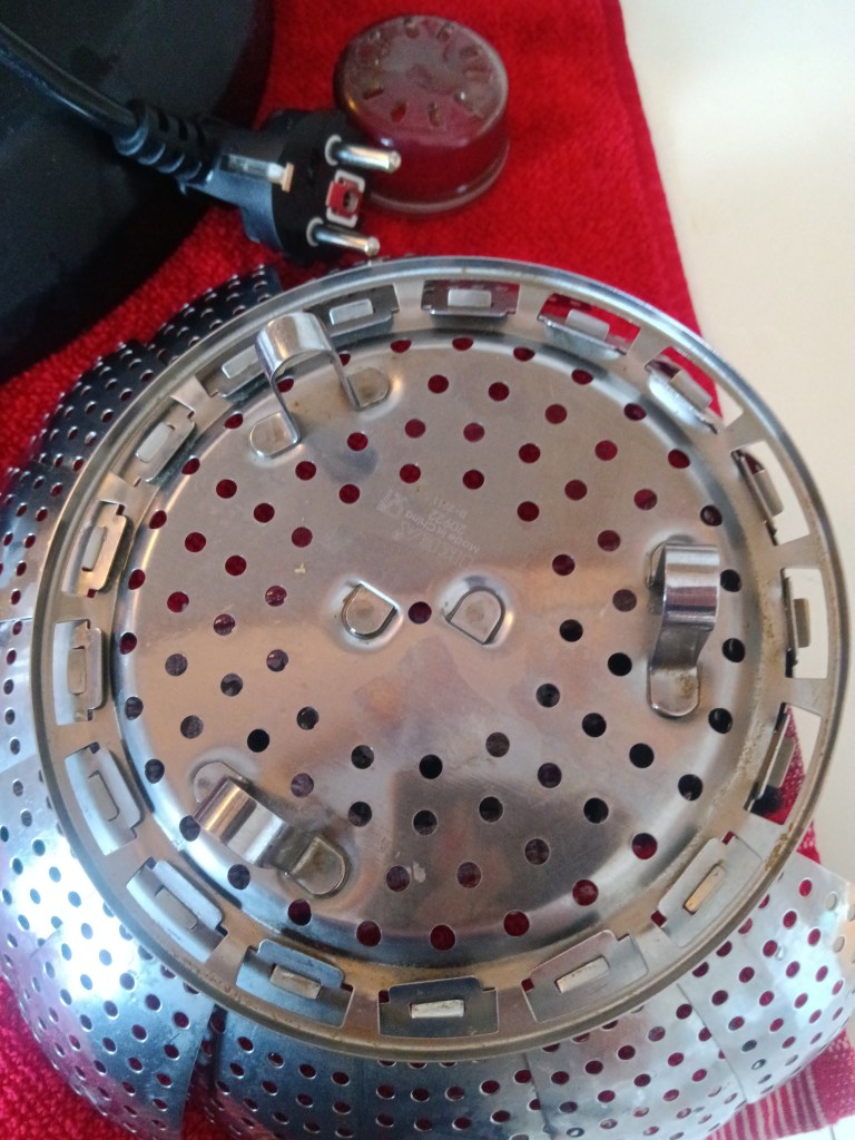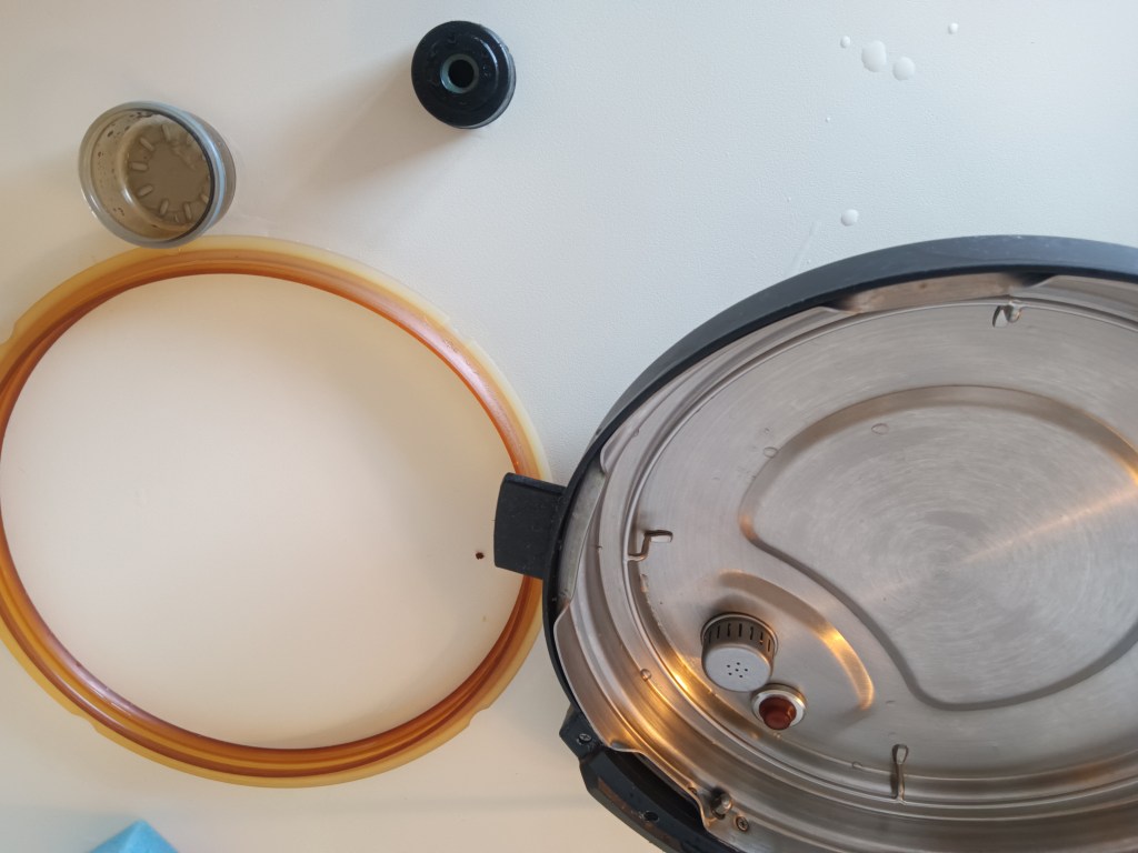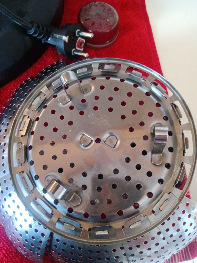 2. Am scos garnitura, sita pentru aburi, butonul negru de la capac, capacul, vasul de inox și vasul extern și le-am frecat bine cu apă caldă cu CIF.