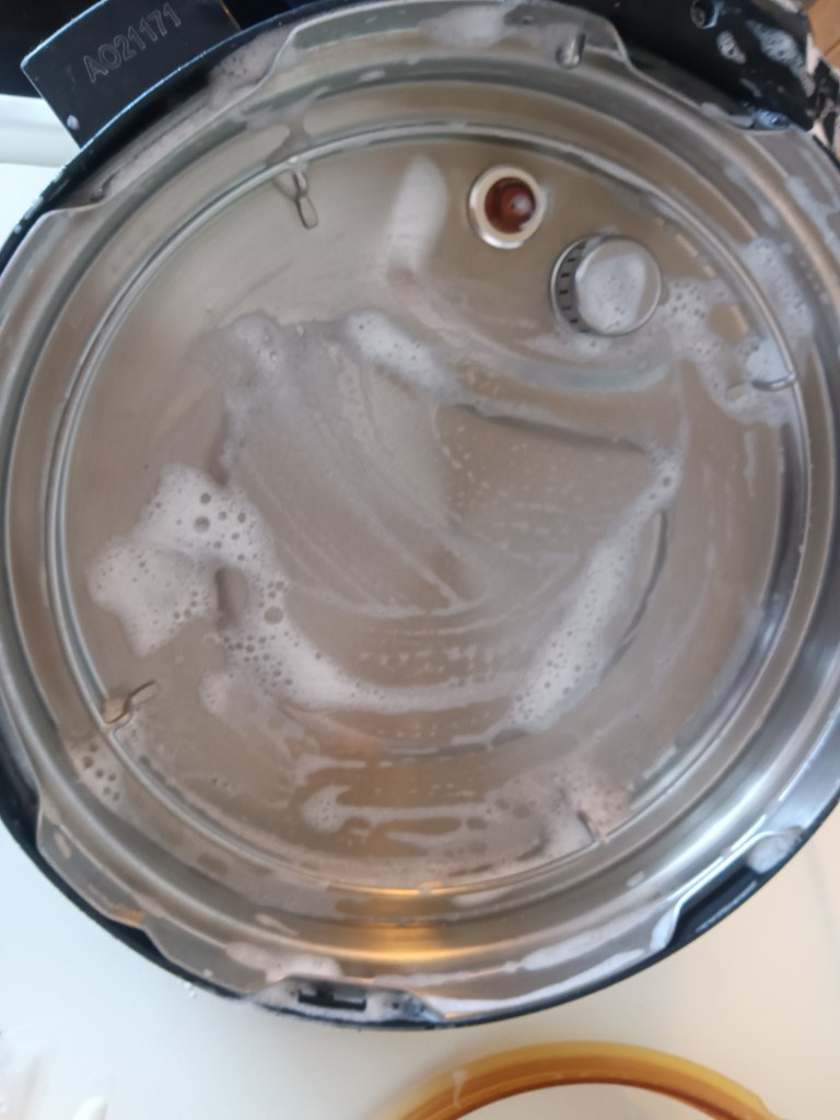 - Am pus cana cu apă și oțetul în vasul de inox. Am închis capacul, am selectat Pressure Cook, High, 5 minute. Când a expirat timpul, am scos rapid presiunea folosind functia Quick Release. În felul acesta, aburii aceia cu oțet vor desfunda și acele componente prin care iese de regulă presiunea (și nu am mai avut, astfel, nevoie să desfac acele componente).