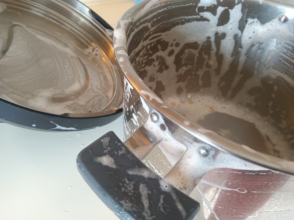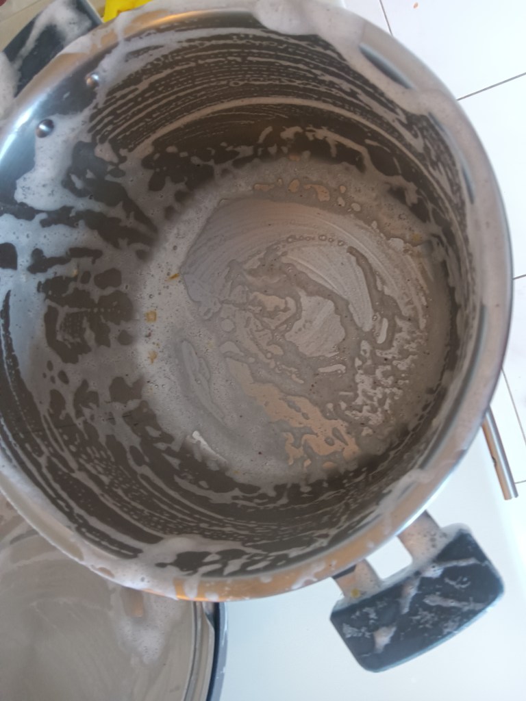 4. Apoi am clătit cu apă rece toate componentele externe, iar cu o lavetă am curățaț vasul de gătit.