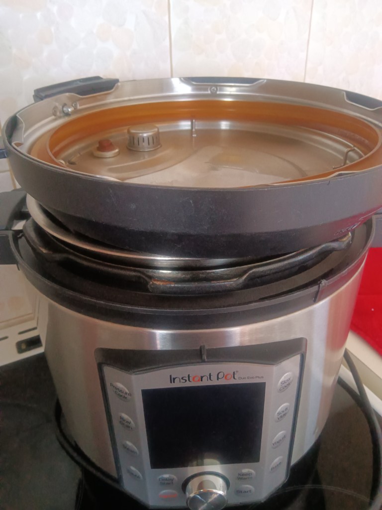 Când toate componentele s-au uscat, le-am pus la locul lor, depozitând multicooker-ul Instant Pot cu capacul în sus și garnitura scoasă, ca să se poată aerisi și mai bine pe parcursul zilei.