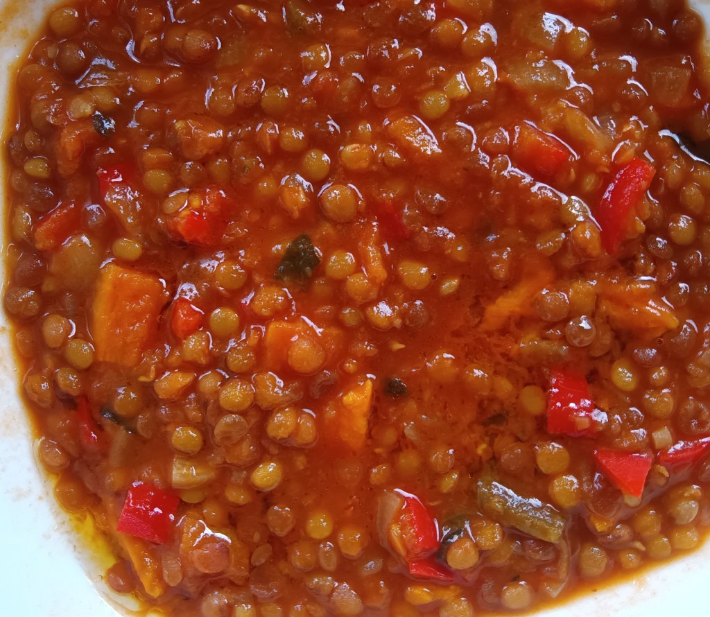 O mâncare delicioasă gata in 20 de minute este și rețeta de azi: mâncare de linte verde cu cartof dulce.