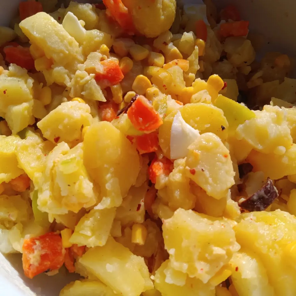 Astăzi am pregătit una din salatele rapide care nu au nevoie de prea mult timp nici pentru a pregăti ingredientele, nici pentru gătire: salată de cartofi