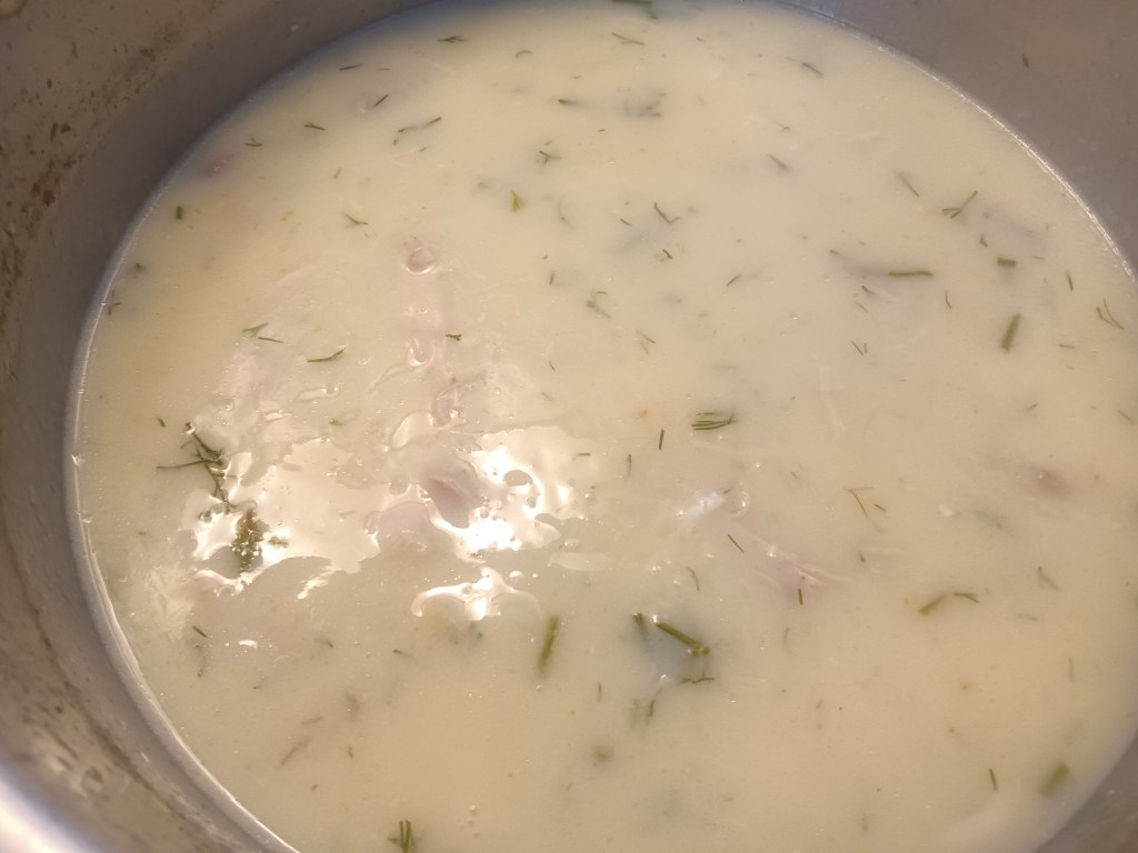 6. Intre timp, într-un bol, am adăugat ouăle+sucul de la lămâie și jumătate (pe celălalt l-am păstrat și l-am adăugat după ce am gustat supa și am văzut că ar putea fi un pic mai acră) + mărarul. Am amestecat bine.