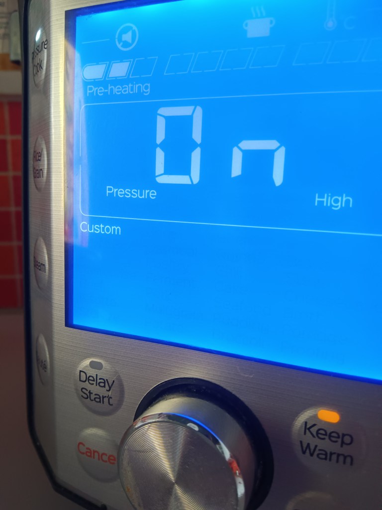 4. Am închis capacul și am selectat Pressure Cook, High, 5 minute. Când a expirat timpul, am scos rapid presiunea.