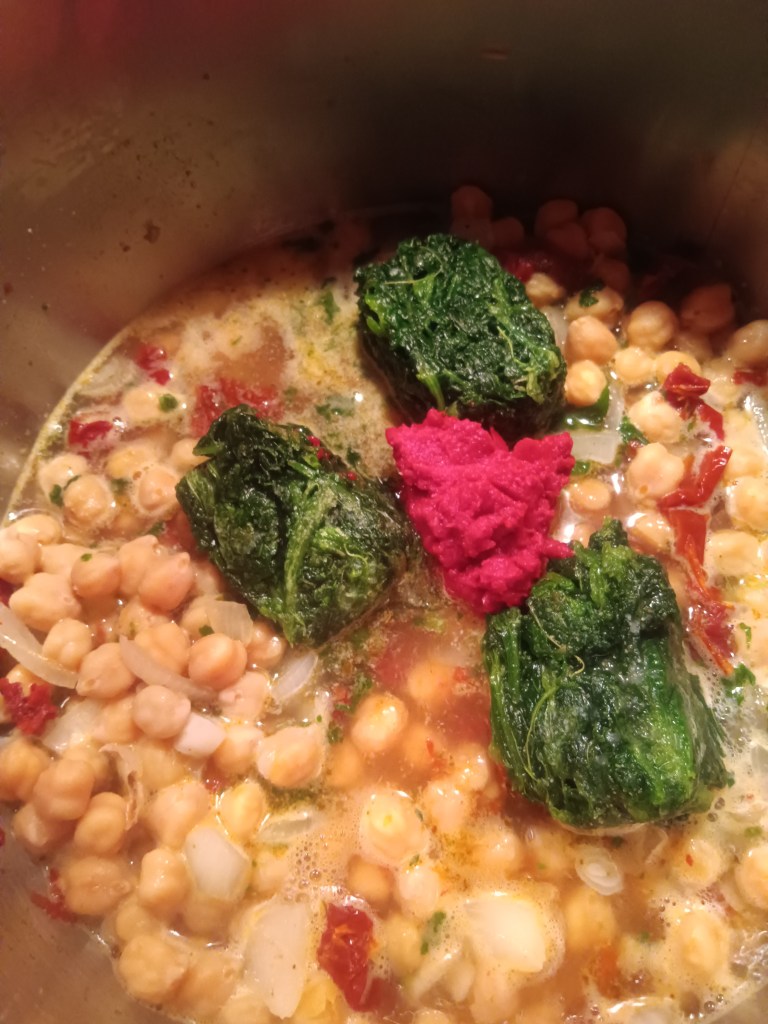 ✅ jumătate de cană de năut (fiert în două reprize a câte Pressure Cook, High, 15 minute; am schimbat și am aruncat apa)