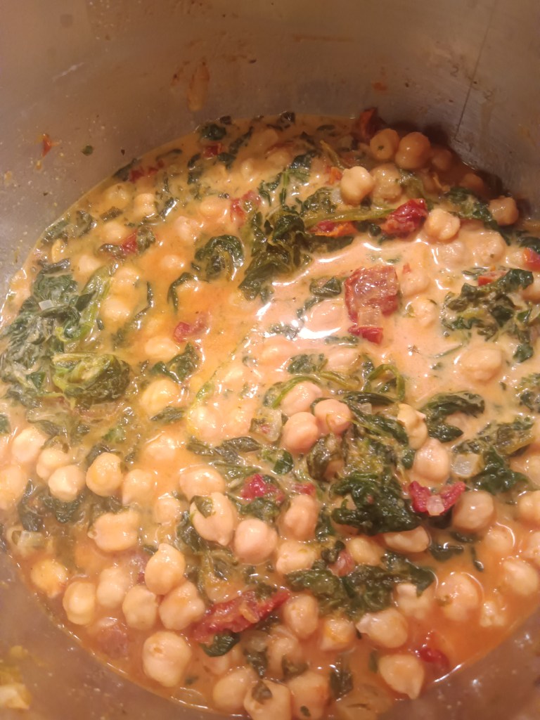 Am iubit Năutul cu spanac și lapte de cocos așa că am zis să îl încercăm și cu smântână. Ne mai rămăsese puțină de la Supa cremă de legume de ieri