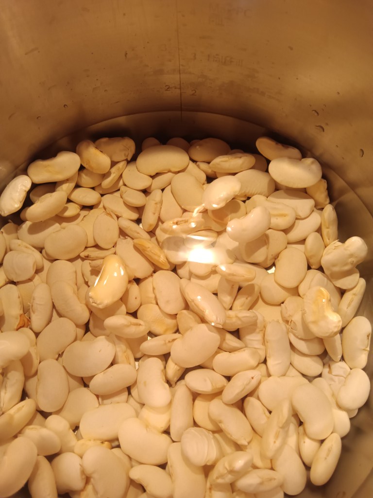 1. Am pus la fiert boabele de fasole, adăugând trei măsuri de apă la o măsură de fasole. Am închis capacul și am selectat Pressure Cook, High, 10 minute. Am repetat acest proces încă o dată. Procedez astfel pentru a evita durerile de burtică ale copiilor. Prin urmare, dacă nu aveți astfel de probleme, puteți seta Pressure Cook, High, 20 de minute. Când a expirat timpul, am lăsat să scadă presiunea 5 minute și apoi am folosit opțiunea Quick Release!