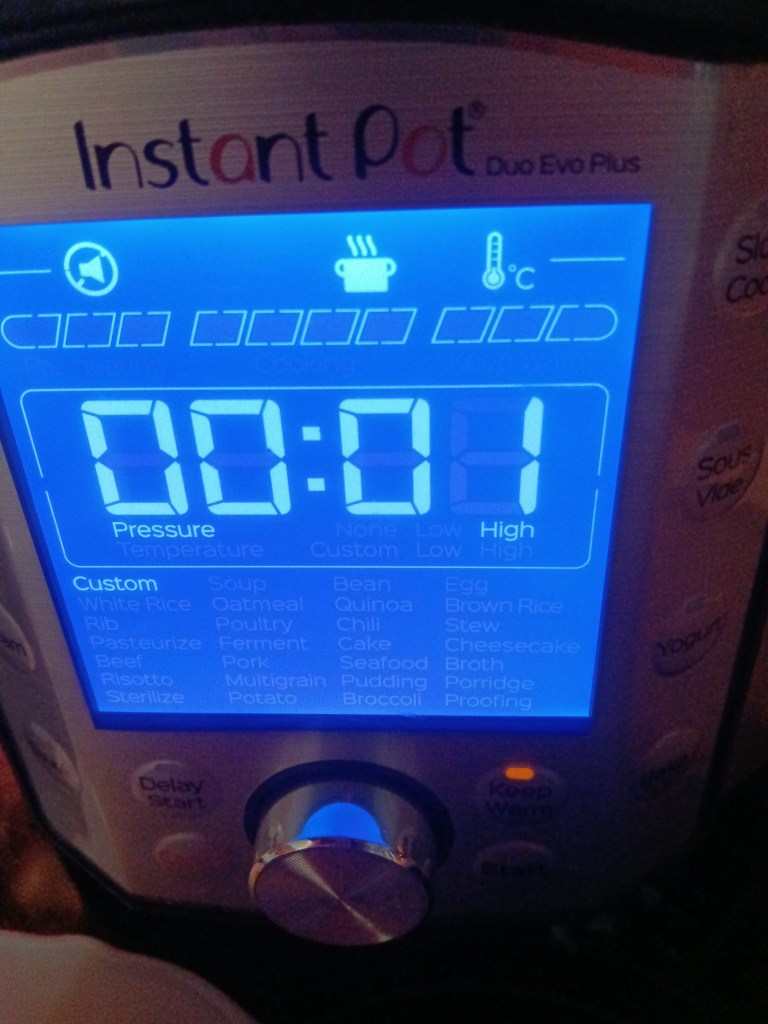 3. Am închis capacul și am selectat opțiunea Pressure Cook, High, 1 minut.