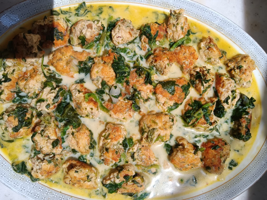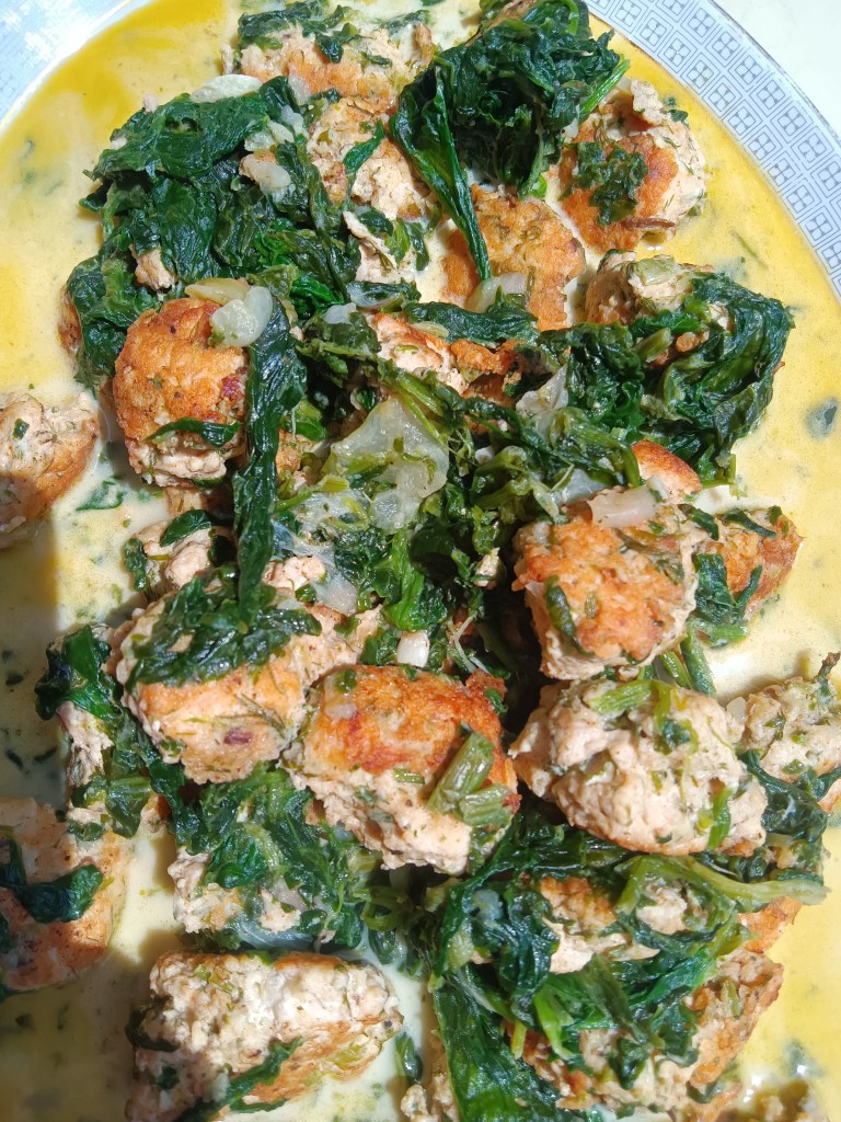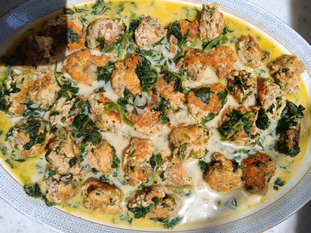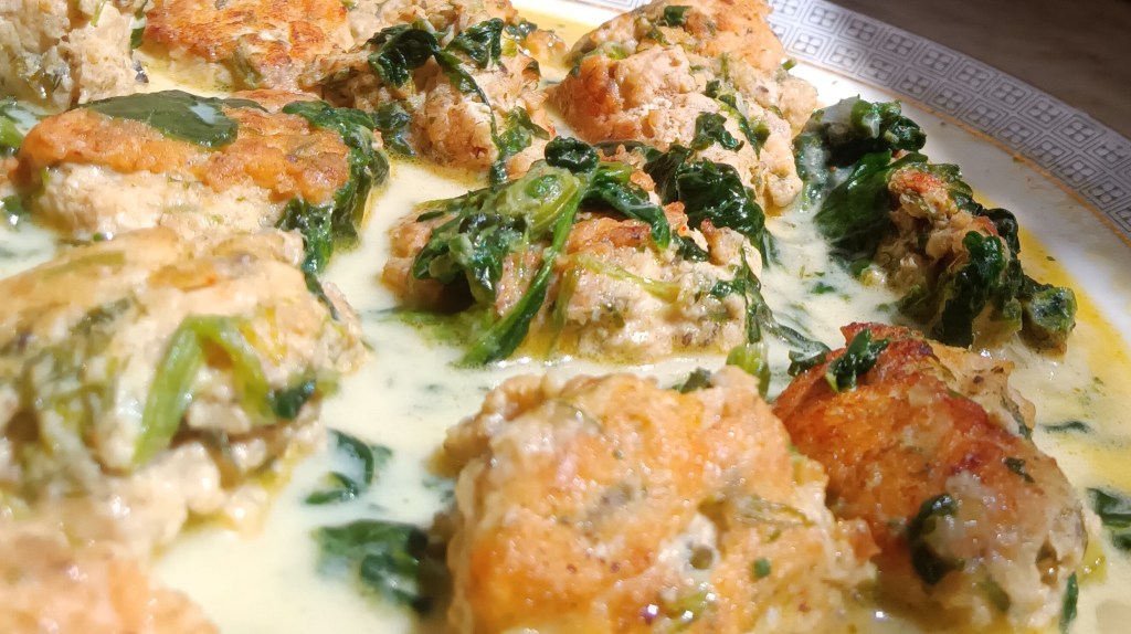 Rețeta de azi e tipul de mâncare pe care dacă o faci o dată, o vei pune pe lista rețetelor cerute din nou și din nou: Chiftele din pui cu sos de spanac și smântână 💙!