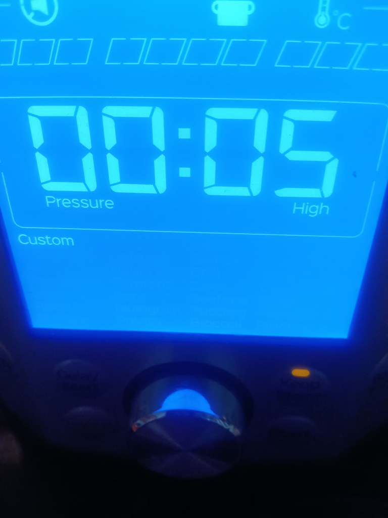 2. Am închis capacul și am selectat Pressure Cook, High, 5 minute.