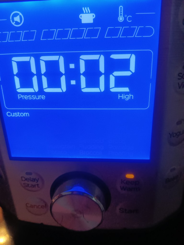 2. Am închis capacul și am selectat opțiunea Pressure Cook, High, 2 minute.