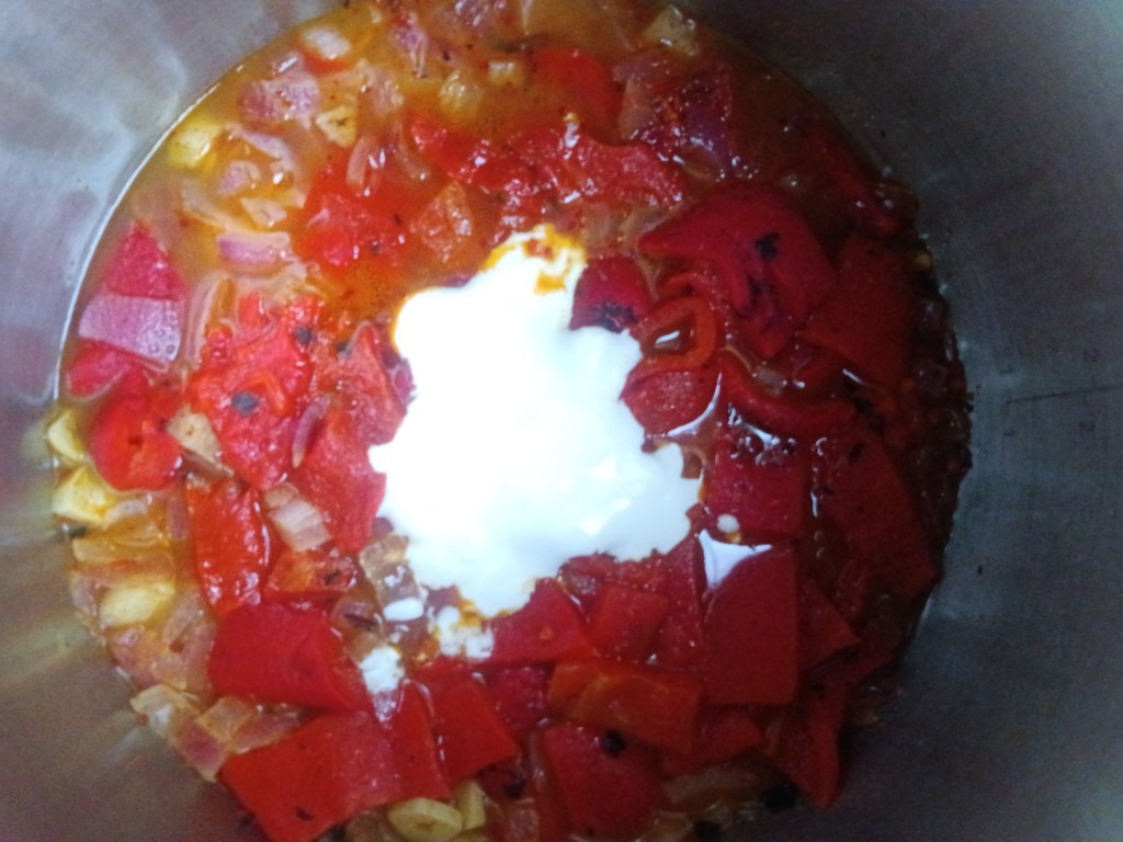 4. Am adăugat smântâna și am lăsat să dea o dată în clocot mâncarea, după care am oprit funcția SAUTÉ.