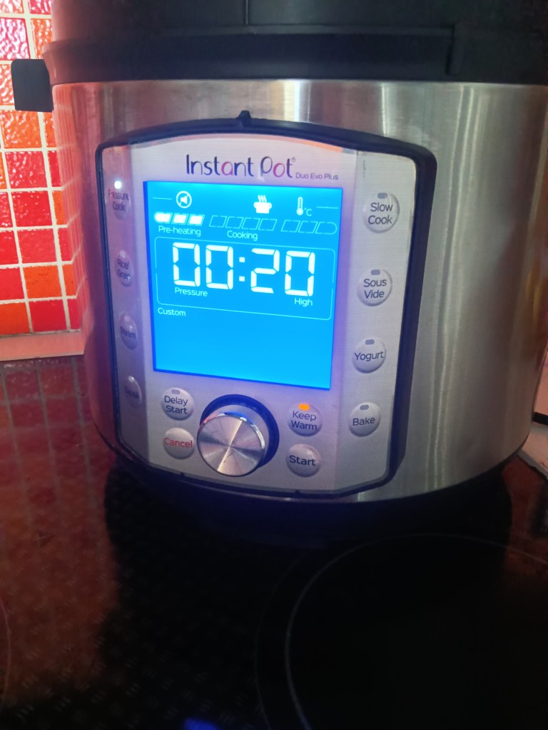 2. Am închis capacul și am selectat Pressure Cook, High, 20 minute.