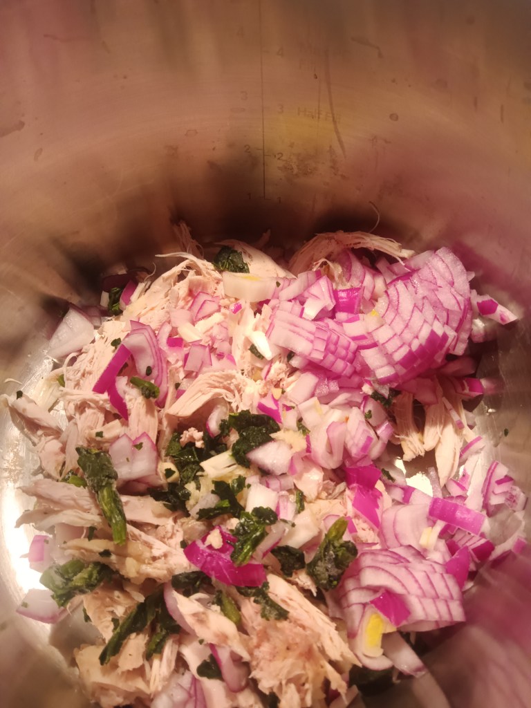 Eu am folosit resturile de piept de pui de la un pui întreg gătit anterior.