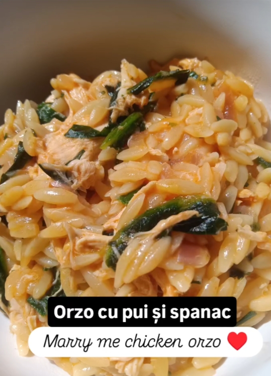 Dacă vrei să ai cina gata într-un sfert de oră, salvează rețetă de azi: Orzo cremos cu pui și spanac. Este o combinație rapidă, sățioasă și incredibil de gustoasă! De altfel, de aici i se și trage renumele de Marry me chicken orzo ♥️!