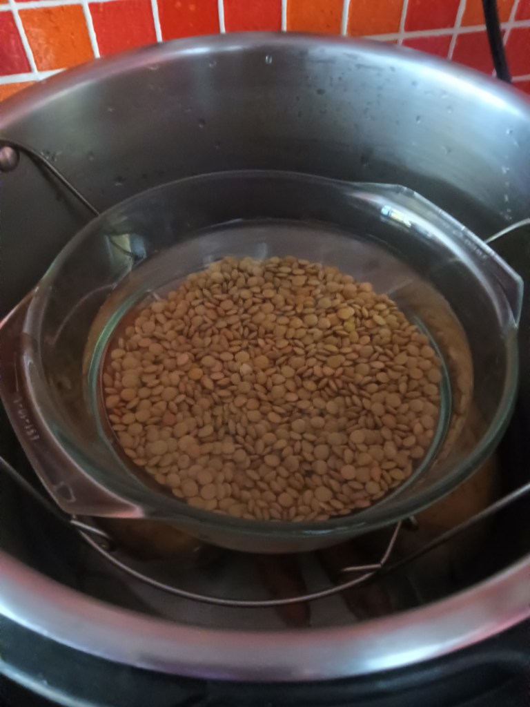 ✅ jumătate de cană de linte fiartă (Pressure Cook, High, 15 minute)