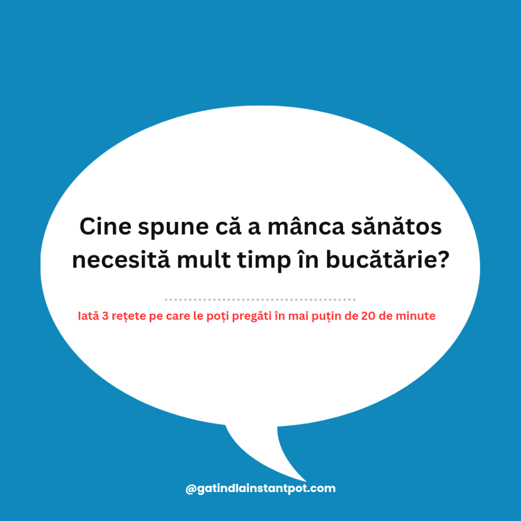 Cine spune că mâncarea sănătoasă necesită mult timp petrecut în bucătărie? Eu îți las azi trei rețete care sunt gata în mai puțin de 20 de minute (incluzând aici timpul de pregătire, gătire sub presiune și de curățare).