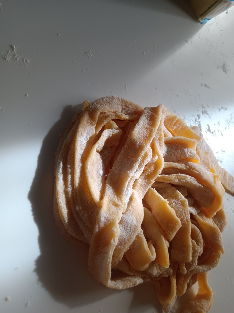 Noi am servit cu paste de casă făcute cu copiii.