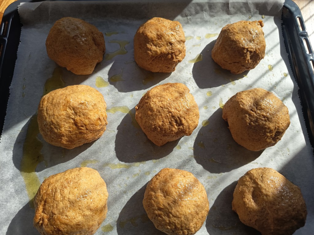 4. Când a expirat timpul, le-am scos din cuptor și le-am uns cu puțină apă (pentru a mă asigura că vor avea coaja moale). Dacă vă place coaja crocantă, puteți sări peste acest pas.