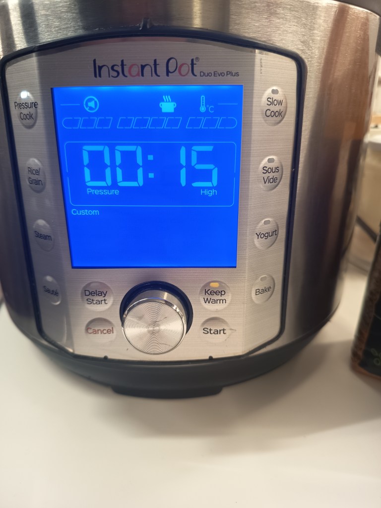 2. Am închis capacul și am selectat Pressure Cook, High, 15 minute.
