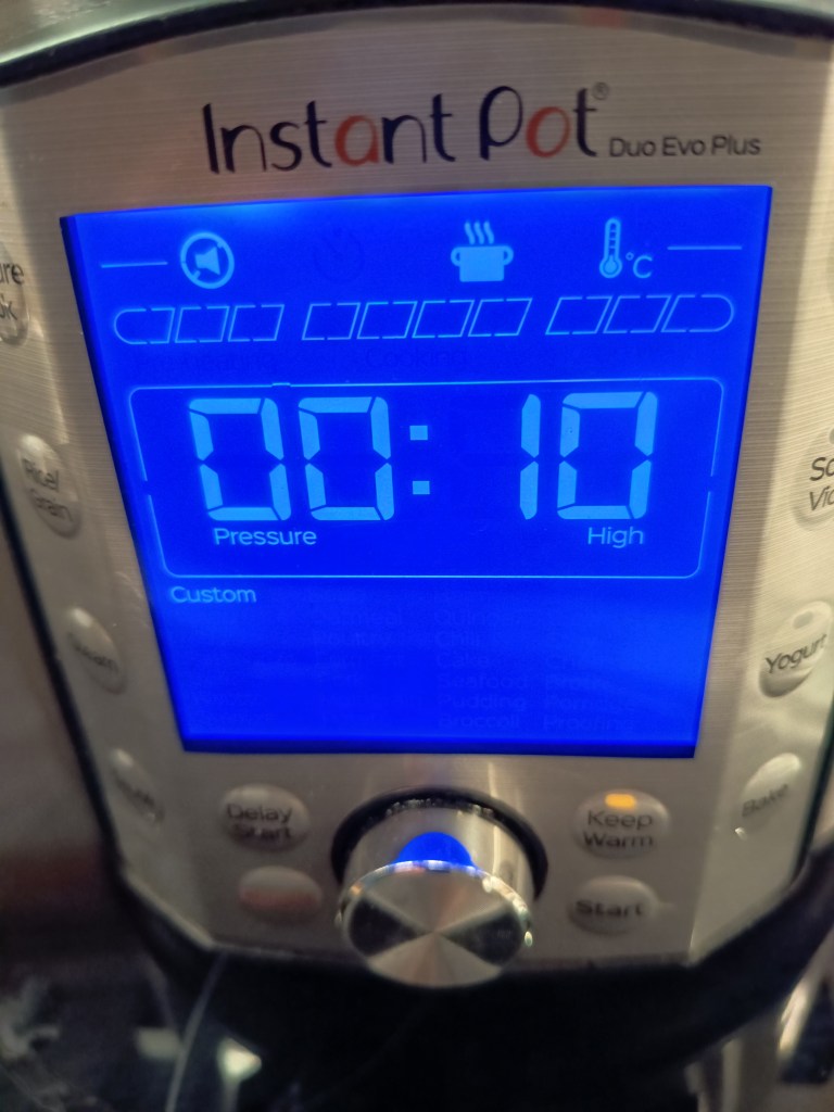 2. Am închis capacul și am pornit setarea Pressure Cook, High, 10 minute.