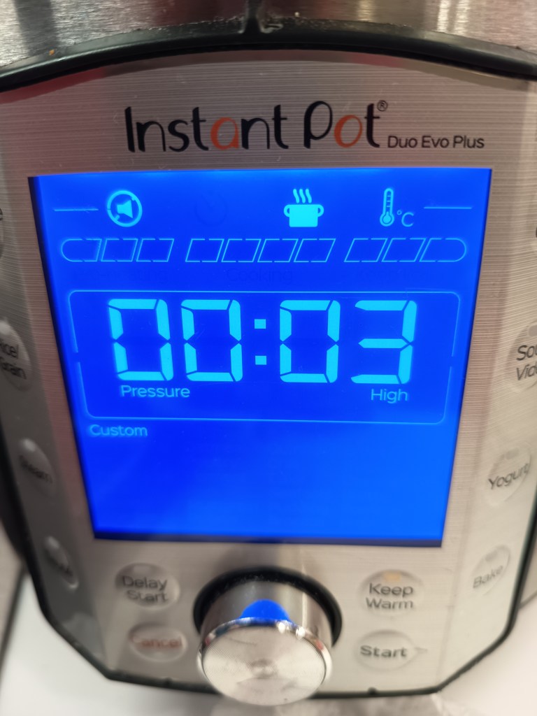 - Am închis capacul și am selectat Pressure Cook, High, 3 minute.