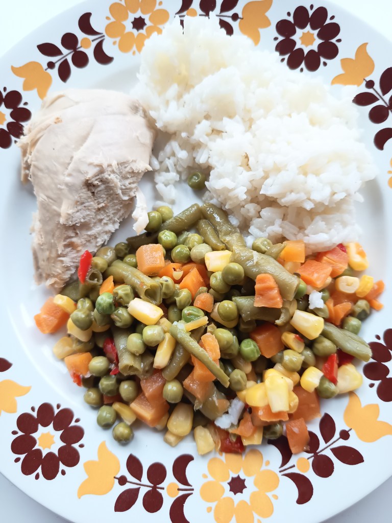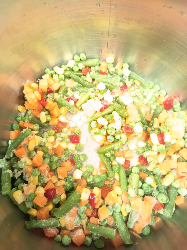 Am mereu mix de legume în congelator: fie amestecul acesta cu porumb, ardei gras, morcov, mazăre și păstăi, fie cel cu broccoli și conopidă. Sunt soluția rapidă care mă scoate din bucluc când nu apuc să gătesc ori când grădinița copiilor anunță o schimbare de menu cu doar o zi înainte.