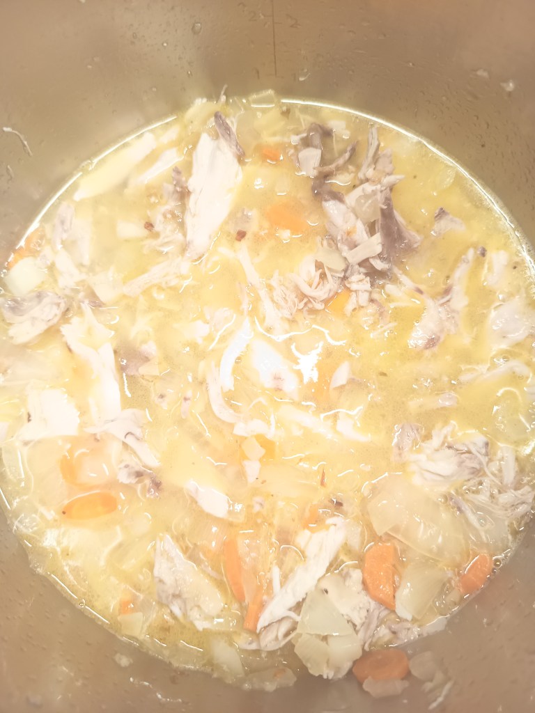 ✅ carnea de la două pulpe de pui gătite anterior(am avut pui întreg cu legume la cina de aseară)