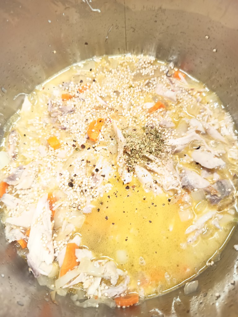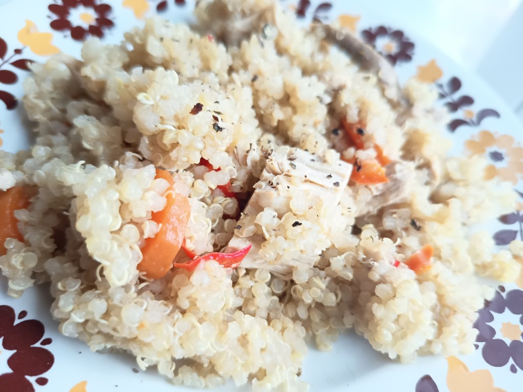 Când îți mai rămâne carne gătită și nu știi ce să mai faci cu ea, in afară de sandvișuri, salate ori vreun pilaf de pui, poți încerca rețeta aceasta: Quinoa cu pui și legume gătită la multicooker-ul Instant Pot! E rapid de pregătit, sănătoasă și gustoasă!